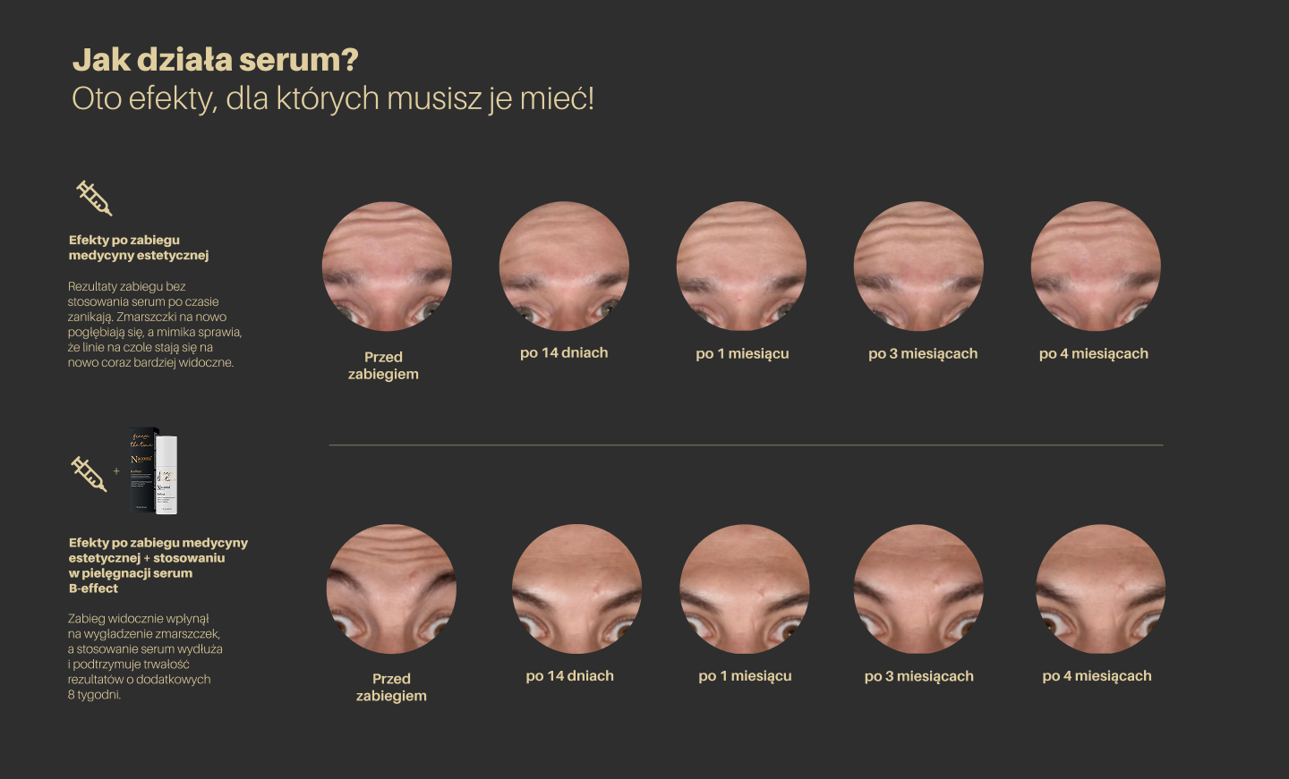 Przełomowa pielęgnacja, która działa na dwa sposoby! Serum jednocześnie działa prewencyjnie i wzmacniająco. Zawarte zaawansowane peptydy nowej generacji nie tylko wykazują intensywne działanie anti-aging, ale także przedłużają efekty profesjonalnych kuracji, takich jak toksyna botulinowa, nawet o 8 tygodni!** Skutecznie wygładzają zmarszczki mimiczne, napinają skórę i przywracają jej młodzieńczą jędrność. Nie czekaj, aż czas zostawi ślad - wybierz pielęgnację, która zawsze będzie o krok przed zmarszczkami!